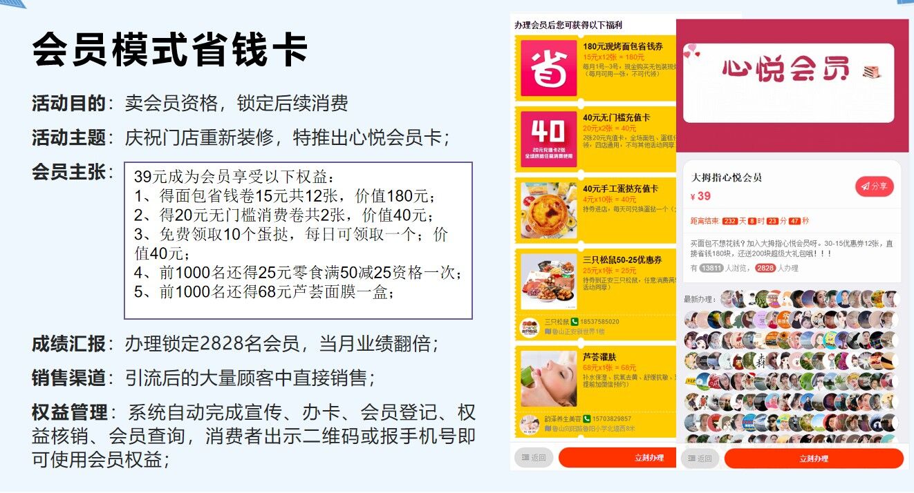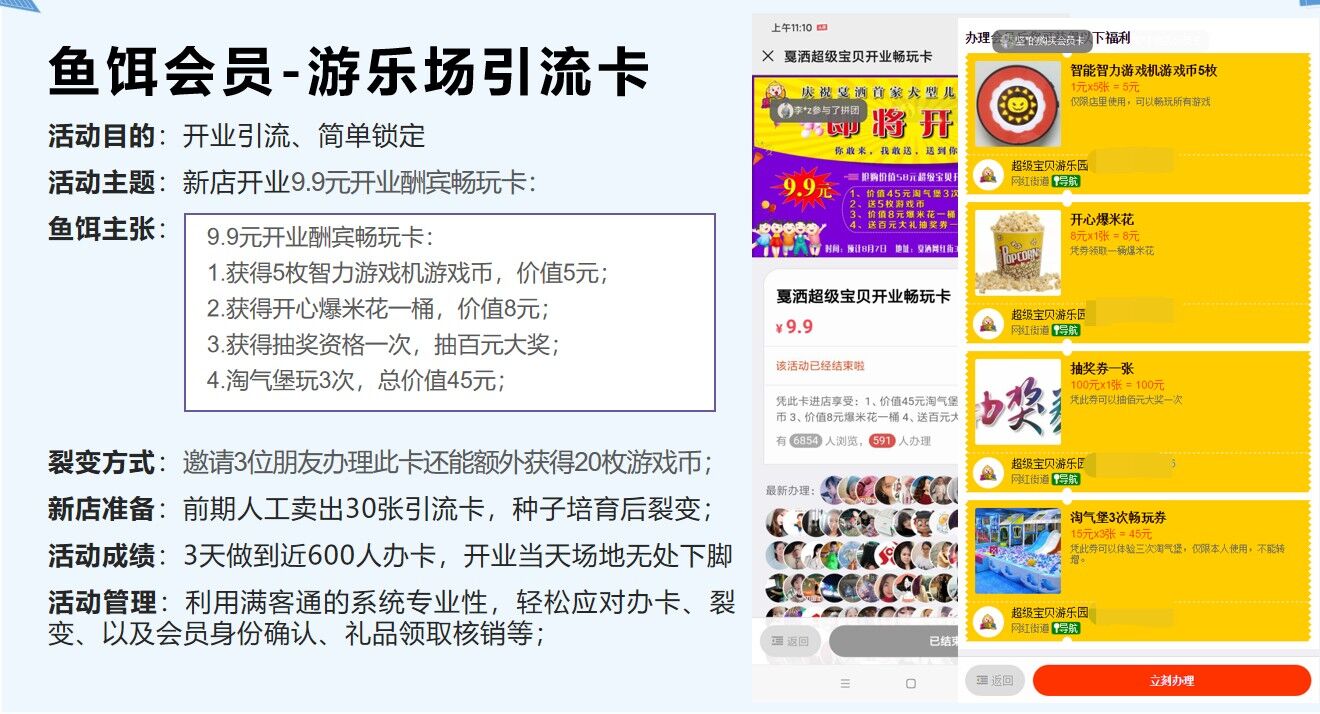引流资格卡:通过设计一个简单的引流鱼饵会员来做线上推广裂变引流,配合推广员机制效果更佳;